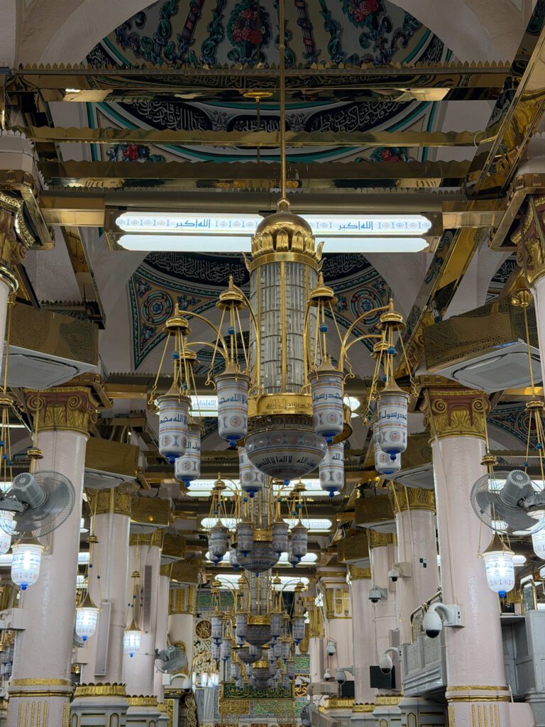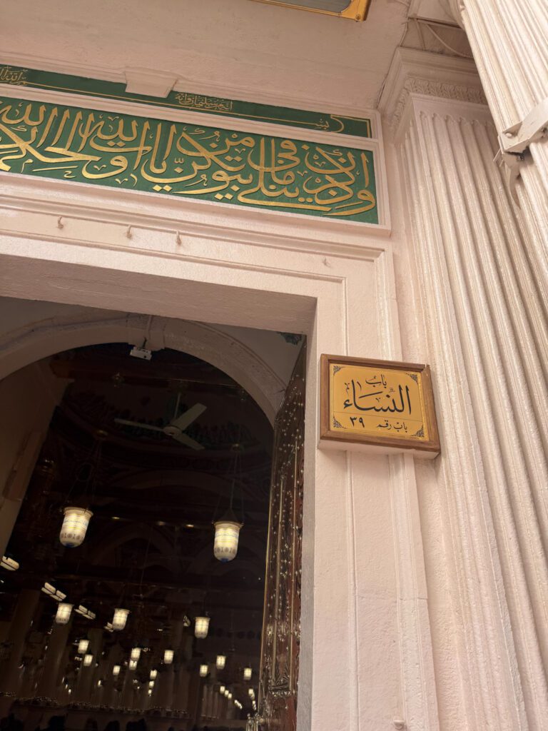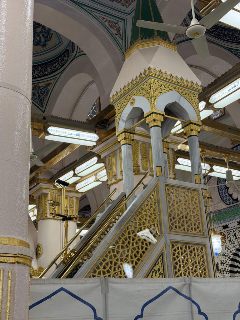 Je me suis placée, prié, invoqué pour mes proches, pour moi-même, pour ceux que j’aime. J’ai aussi eu la chance de me rapprocher du manbar du Prophète ﷺ, ce lieu où il prêchait et guidait la communauté. J’ai salué le Prophète ﷺ, ainsi que Abu Bakr et Omar ibn al-Khattab, en priant pour eux et en envoyant mes salutations.