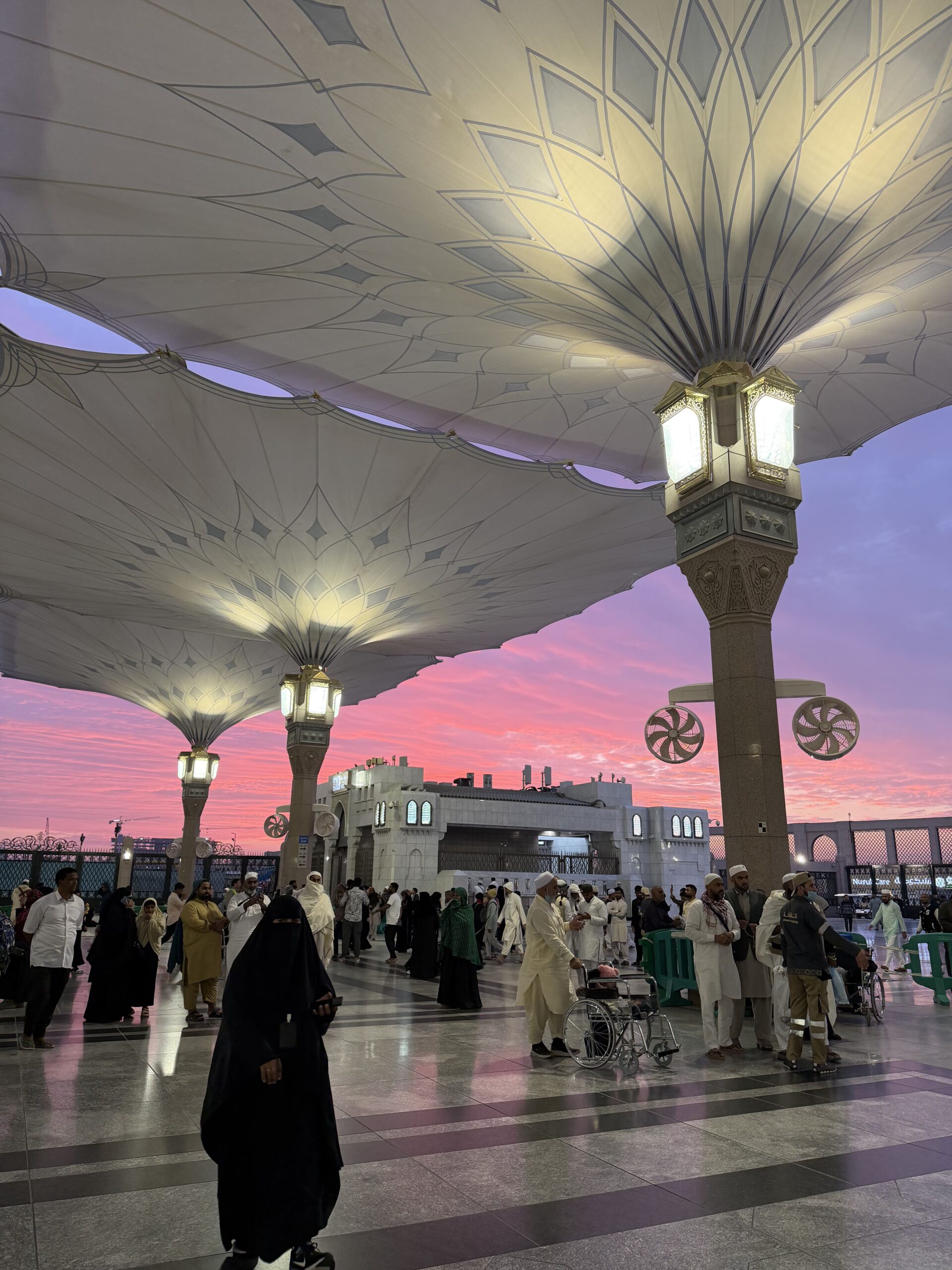 Premiers pas à Médine : une sérénité incomparable :Après 4 journées intenses et profondément émouvantes à La Mecque, il est temps de poursuivre notre voyage spirituel vers Médine, la ville du Prophète ﷺ. Nous prenons le train Haramain à 9h